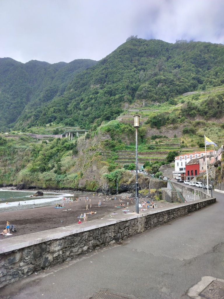 בוקר יום חמישי במדיירה. את הרכבל והגנים הבוטניים של מונטה החלטנו כבר בתחילת הטיול שנשמור ליום ההולדת של הילדה שחל ביום השישי של הטיול שלנו ולכן, החלטנו שנחזור למקומות שאהבנו מאוד. הראשון היה החוף השחור בסיישל, בפעם הקודמת היינו רק בבריכות הטבעיות של סיישל, הפעם עצרנו פה קודם. חוף מקסים, גדול, חול דק שחור. בצידו מפל שיורד מההר הישר אל מתרחצי החוף. משם לבריכות של סיישל, המים החמימים שם שבו את ליבנו, כמו גם הנוף הקסום ובית הקפה הקטן עם דוכן האננסים שמכין שייקים אלכוהוליים או טבעיים בתוך אננס (10 יורו). פה גם ניסיתי לראשונה את עוגת הדבש המקומית והיא טעימה מאוד. מפה נסענו לתצפית הנדנדה ברביירה דה ג'נלה, Baloiço "I Love Ribeira da Janela". אחכ הילדים רצו להגיע שוב ליער פנל, אותו יער קסום מתחילת הטיול אז כך היה.
