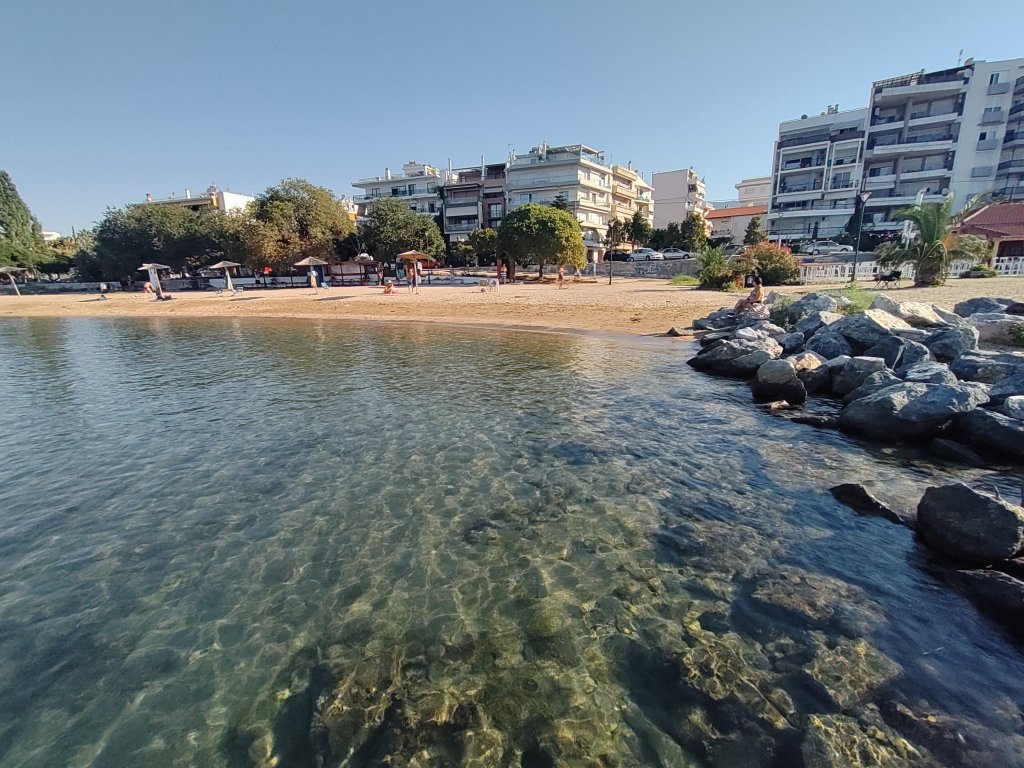 מונית לגבעת ליבראטו. חוף יפה של כל אתונה הים והאקרופוליס על הגבעה.