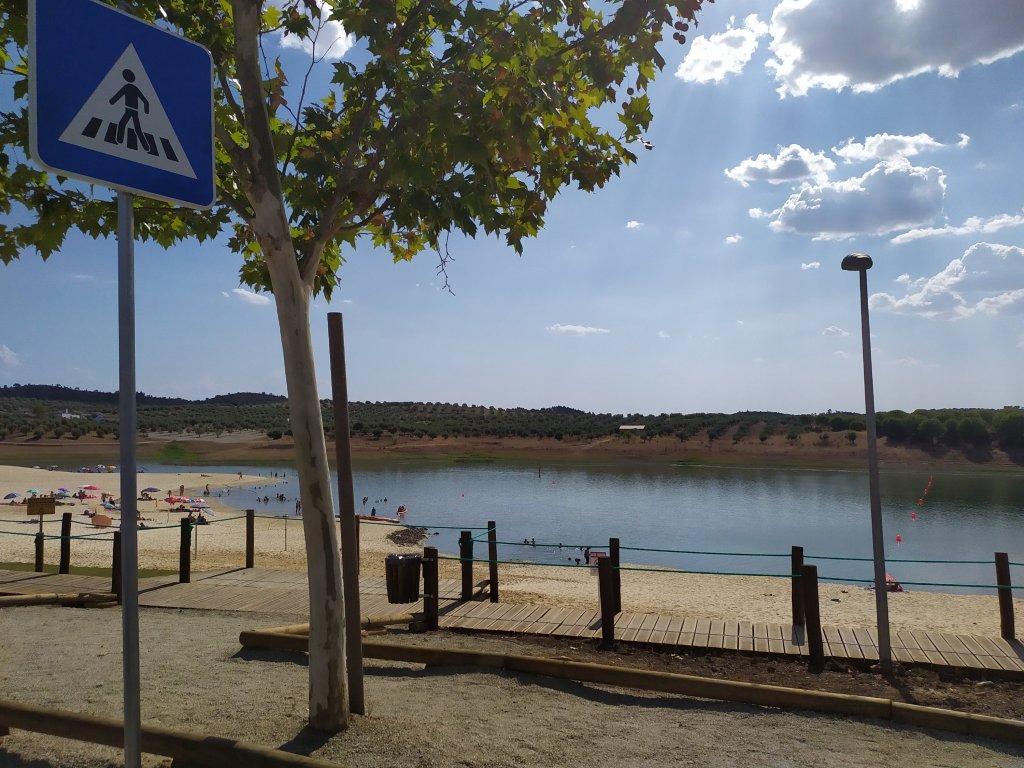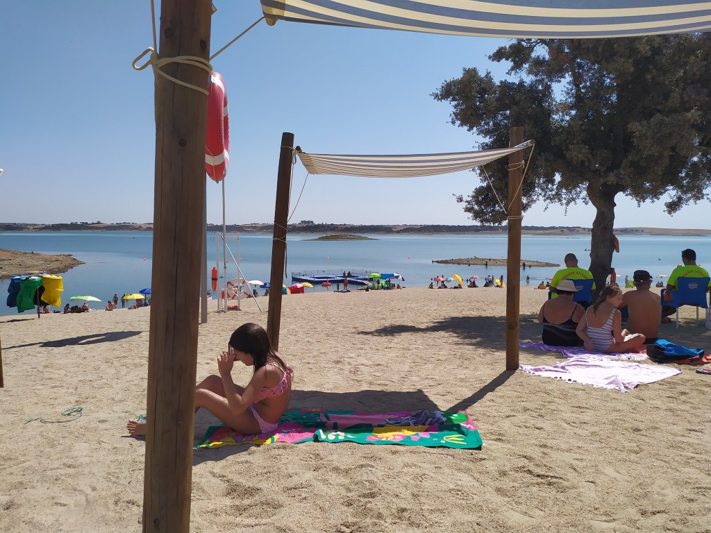 משם ירדנו לחוף של מונסרז. Praia Fluvial de Monsaraz, חוף רחצה מוסדר ומסודר. נגיש ונוח לרחצה. יש במקום בית קפה ומזנון. עמדת מסג', ושירותי הצלה.